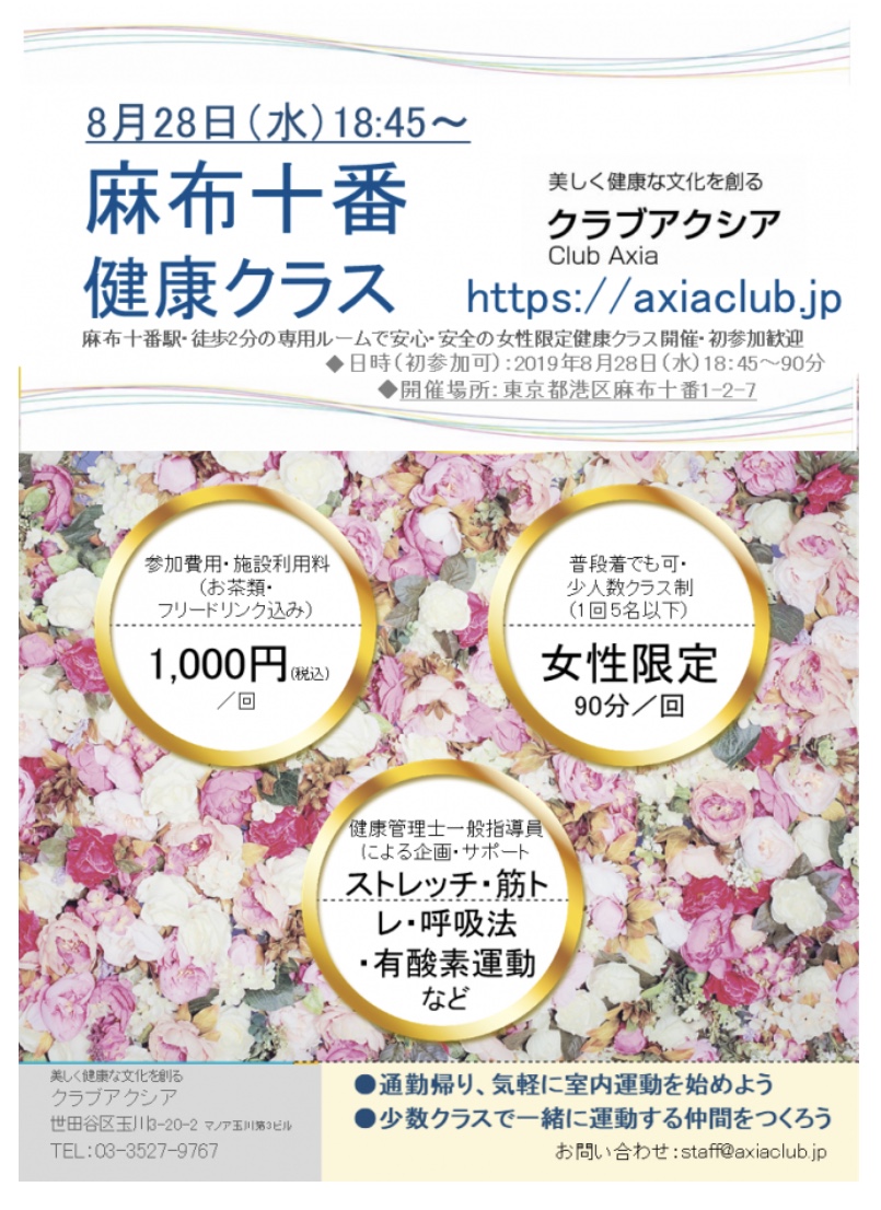健康クラス8/28(水)麻布十番 #運動